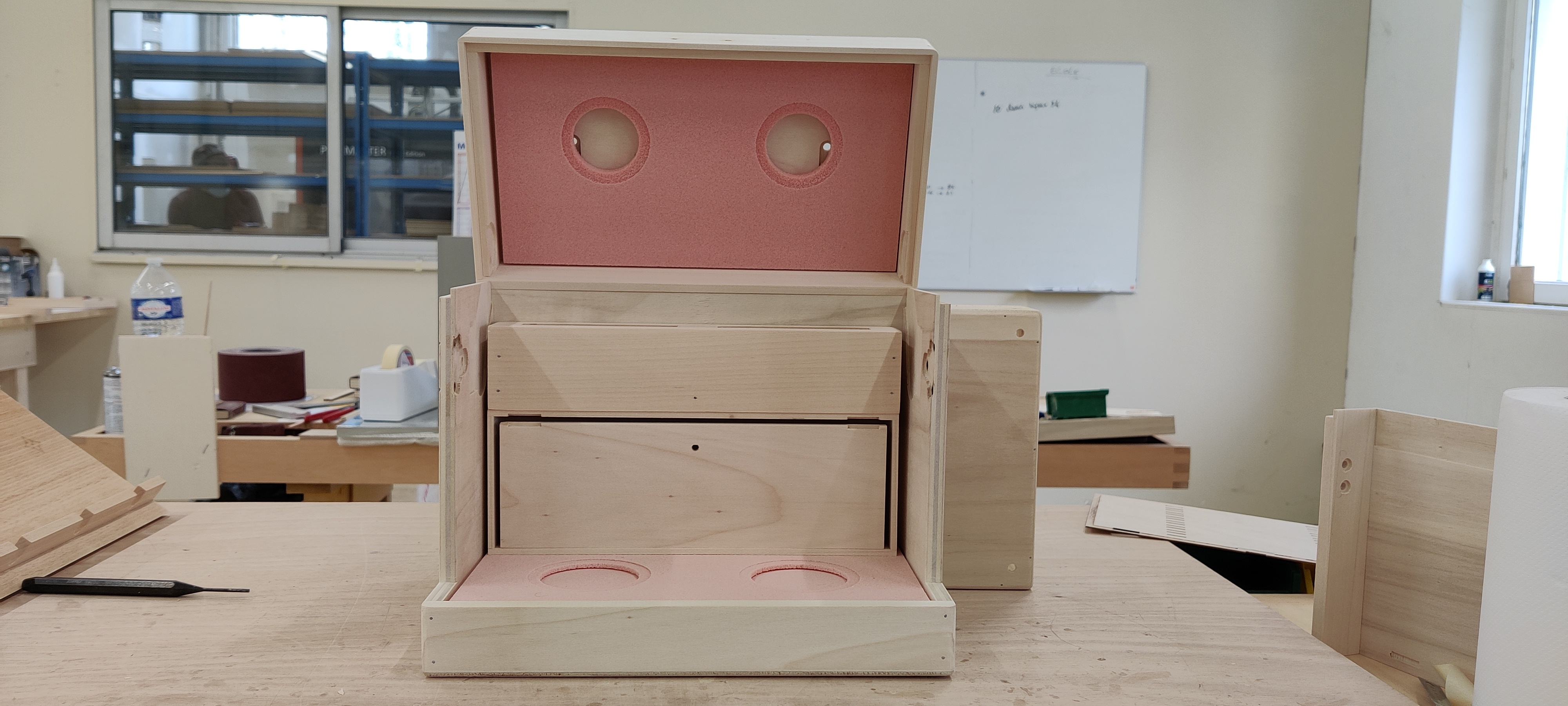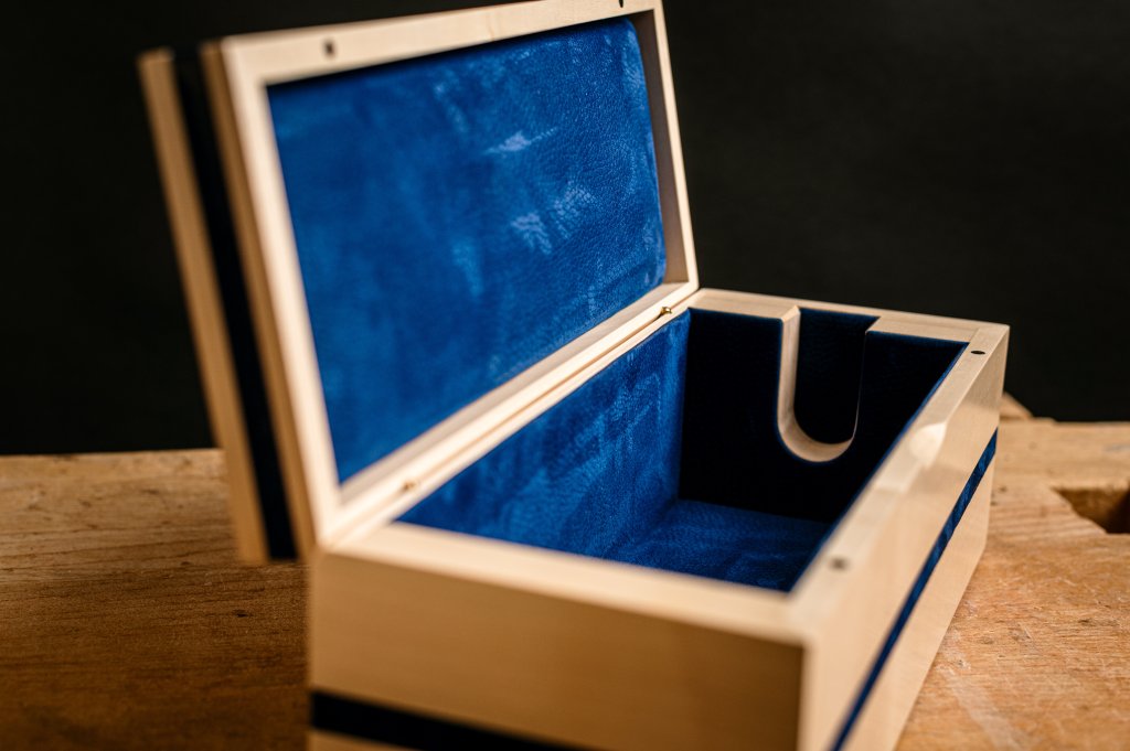 Un coffret à gainer, assemblé à la main en peuplier, incarne l’équilibre entre savoir-faire artisanal et efficacité de production. Le bois de peuplier, reconnu pour sa légèreté et sa maniabilité, est découpé et ajusté avec une grande précision pour créer des coffrets robustes. Chaque pièce est préparée avec soin, notamment les emplacements des pièces métalliques, réalisés avec exactitude pour un assemblage parfait. la surface extérieure du coffret est lisse, sobre et élégante, idéale pour recevoir une finition en cuir ou tissu haut de gamme.
